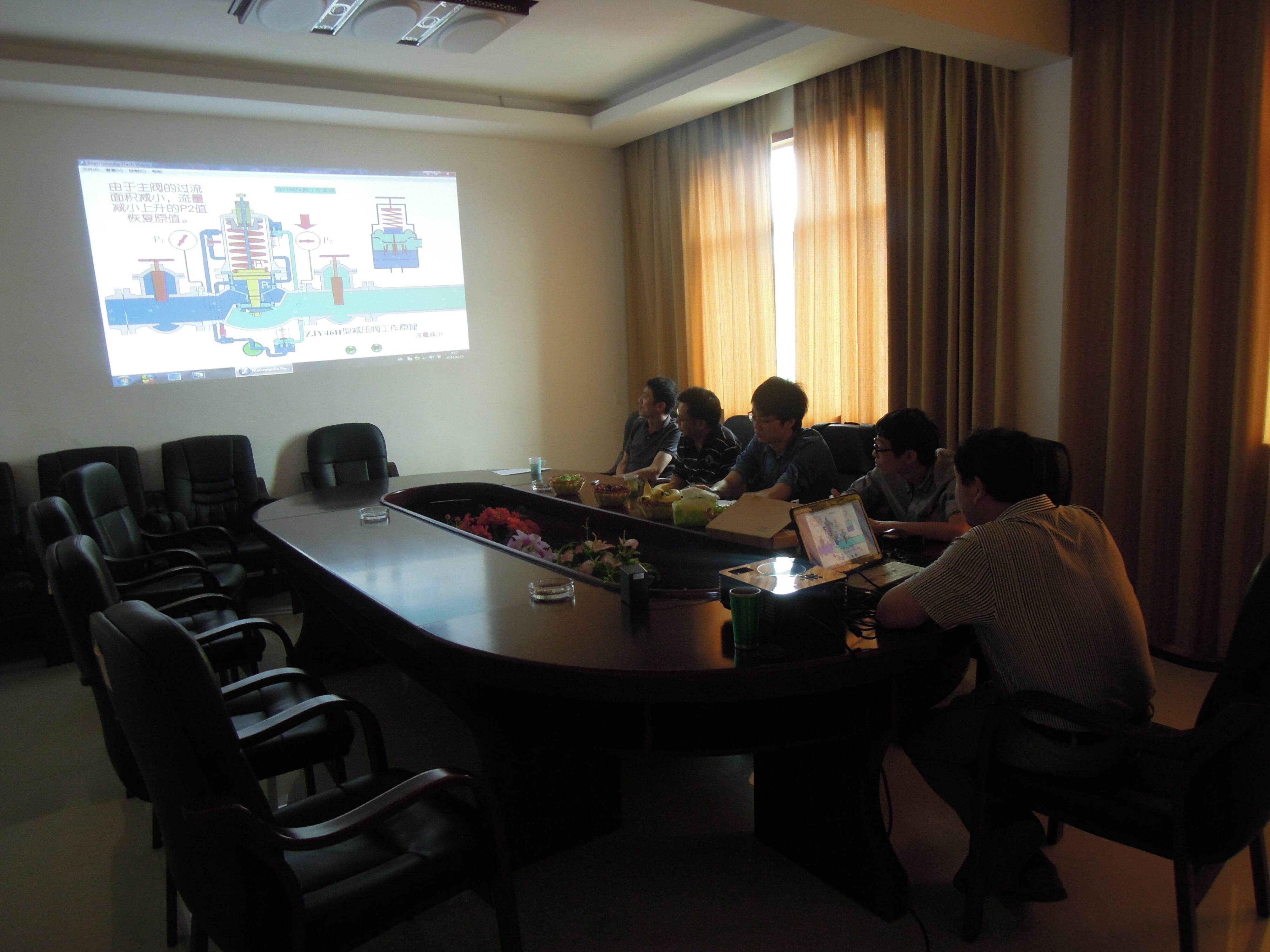 圖5、中基張總正在為大崗山技術(shù)人員進(jìn)行減壓閥相關(guān)性能原理的培訓(xùn)