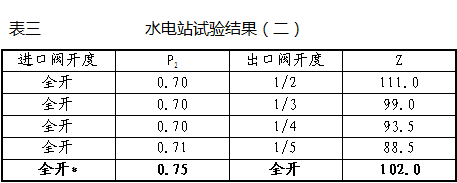 水電站試驗結果見表二和表三: